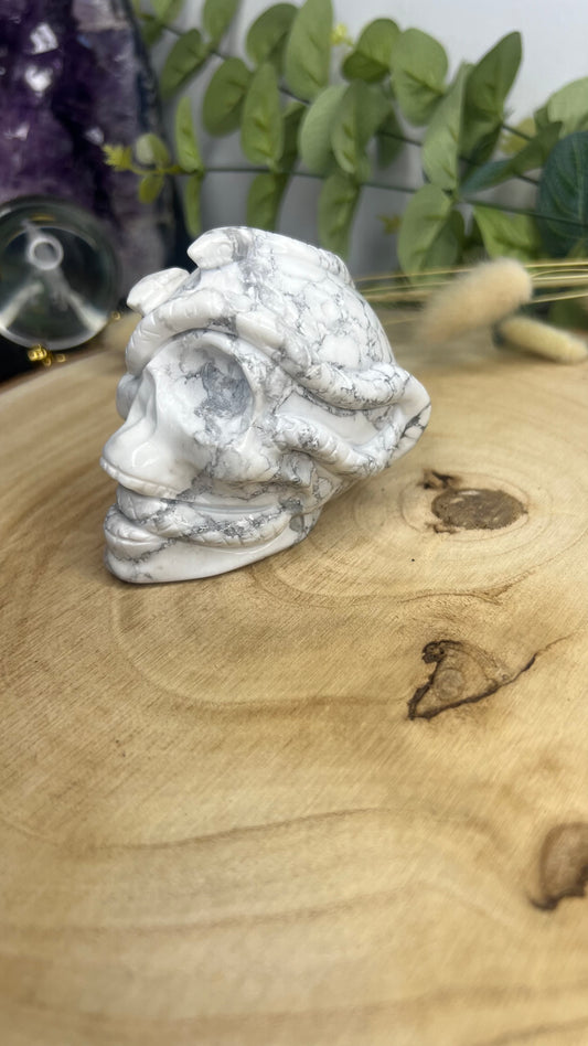 • Sculpture sur cristal en forme de crâne de serpent Howlite