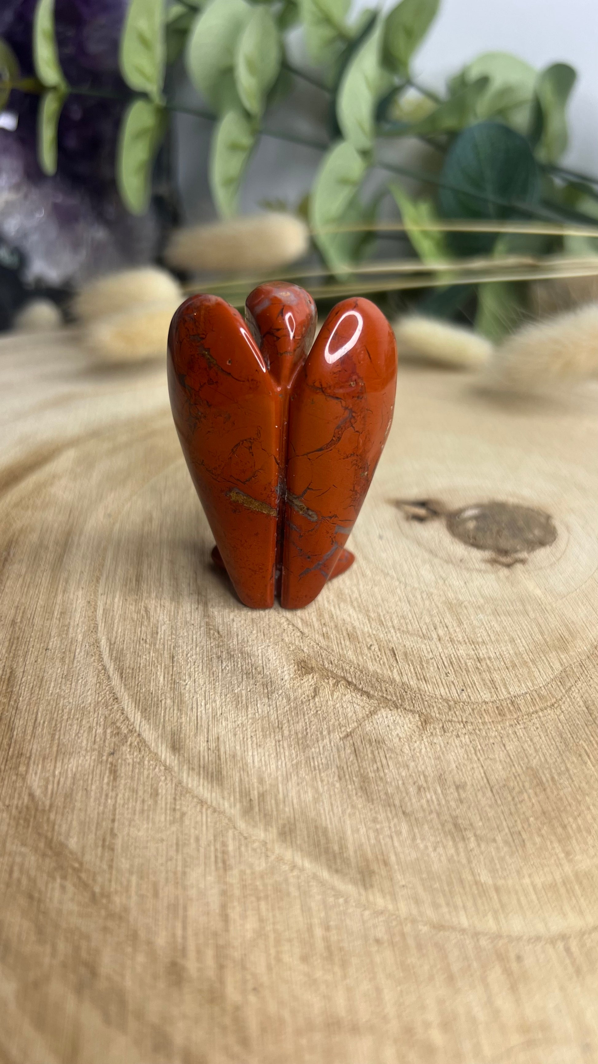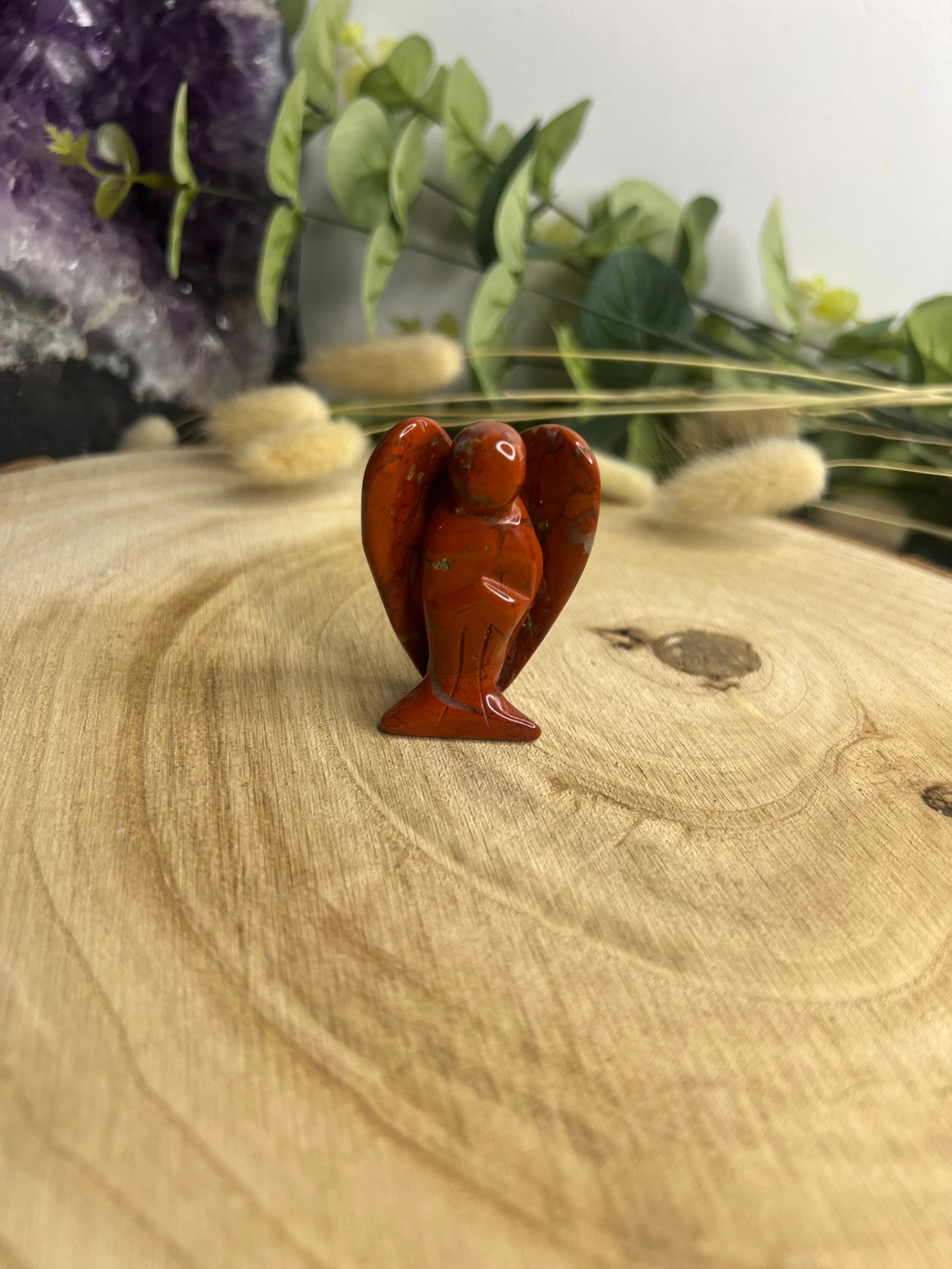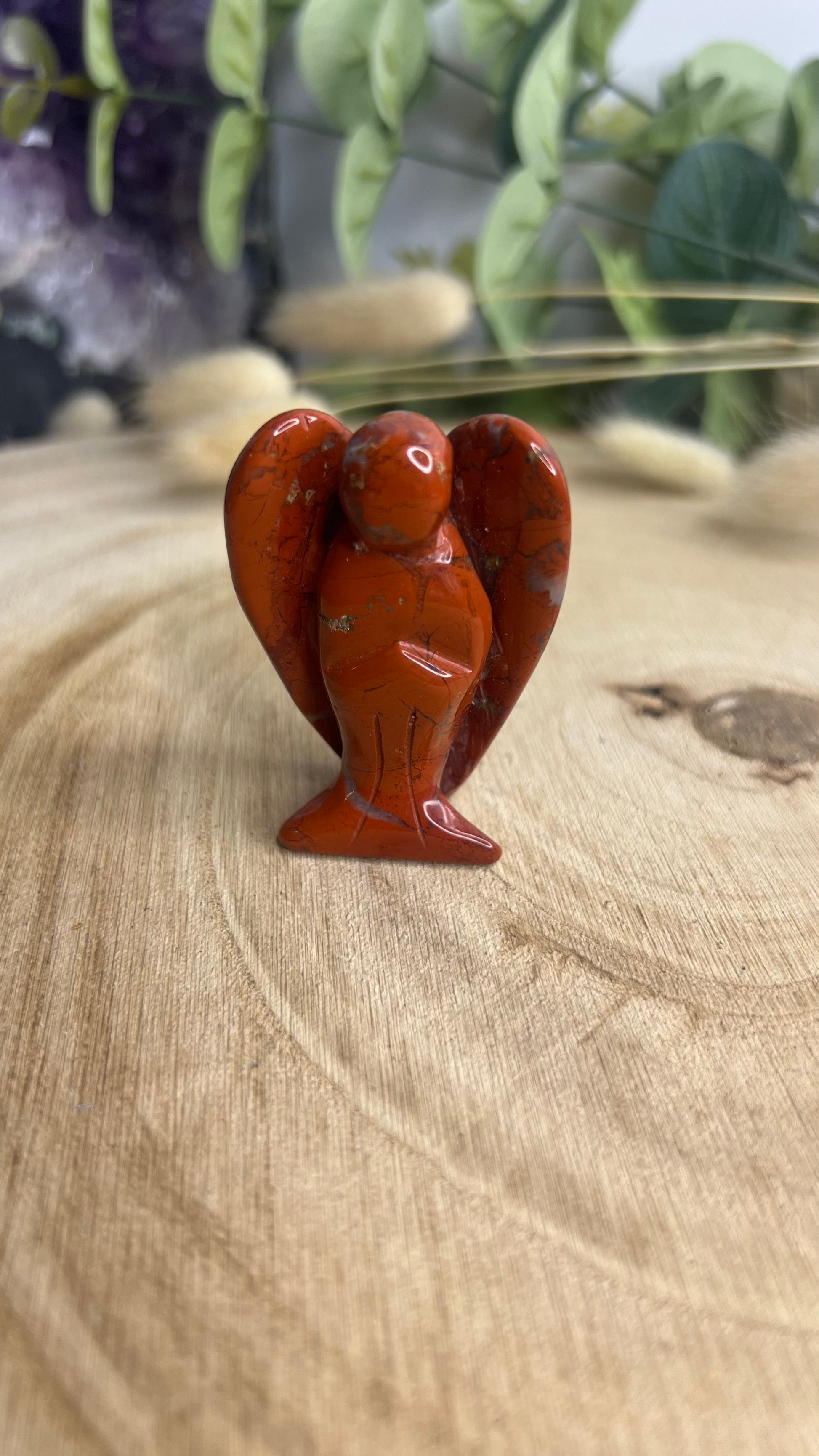 L'ange en Jaspe Rouge est confectionné à partir d'une pierre semi-précieuse, réputée pour sa couleur intense et ses propriétés énergétiques. Cet accessoire est idéal pour ceux qui cherchent à renforcer leur vitalité, leur détermination et leur sécurité intérieure.