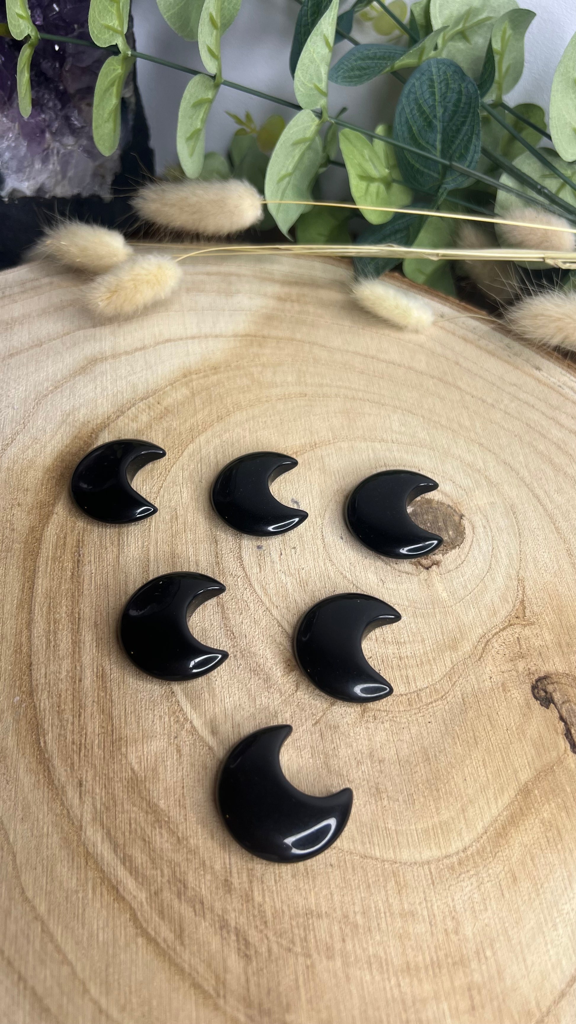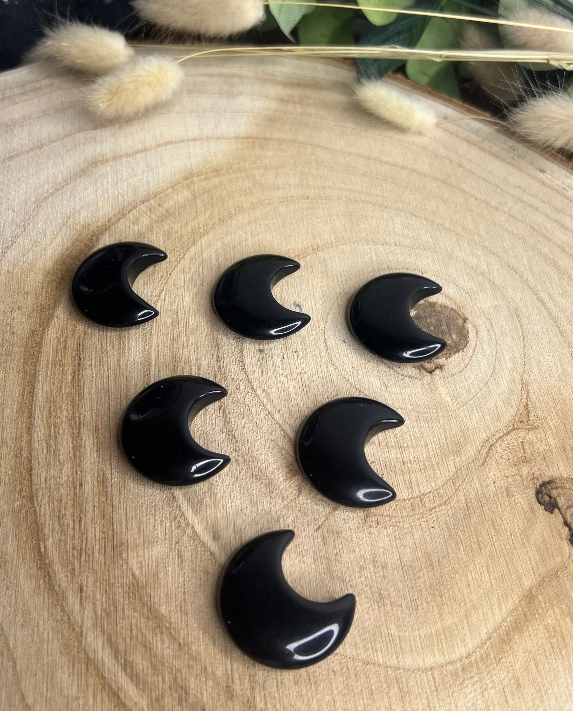 Le croissant de lune en obsidienne est une pièce artisanale fabriquée à partir d'une pierre volcanique noire, réputée pour sa beauté naturelle et ses propriétés protectrices. Cette forme symbolique évoque la spiritualité et l'intuition.