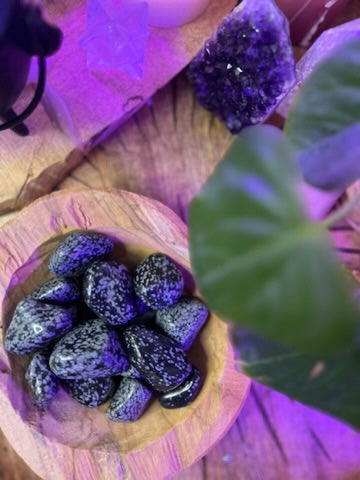 - Lumière de la Lune : Poser l'Obsidienne Neige en plein air durant la nuit, surtout lors de la pleine lune, pour lui permettre de se recharger