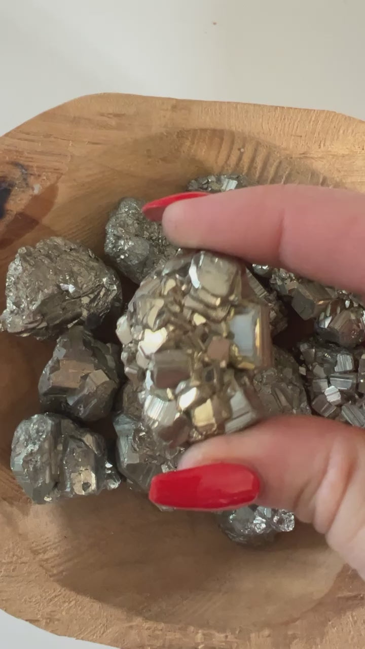 La pierre polie pyrite, également connue sous le nom d'« or des fous », est une pierre semi-précieuse au lustre métallique doré. Très appréciée pour sa beauté, elle est aussi reconnue pour ses nombreuses propriétés bénéfiques en lithothérapie.