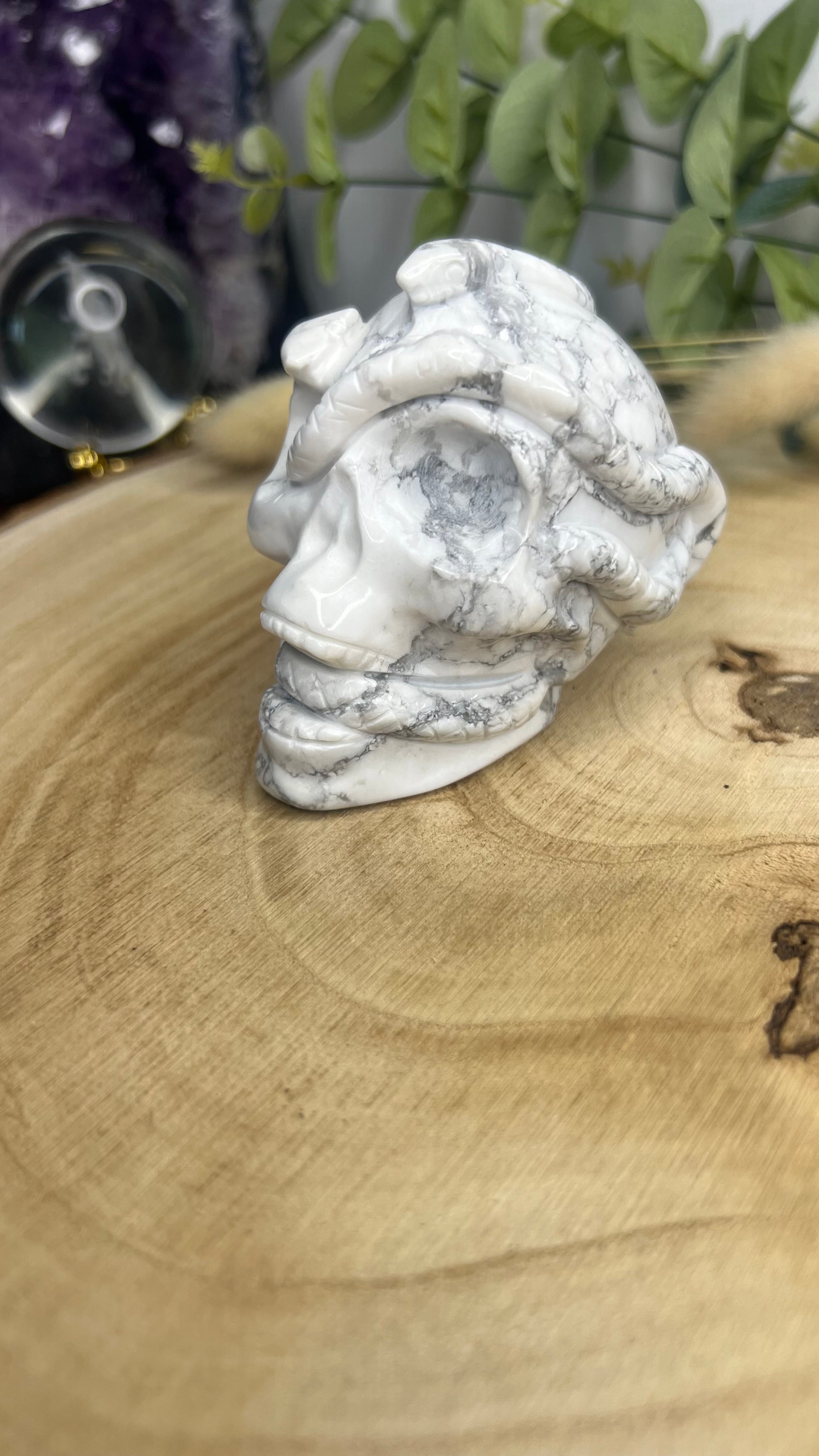 Sculpture sur cristal en forme de crâne de serpent Howlite