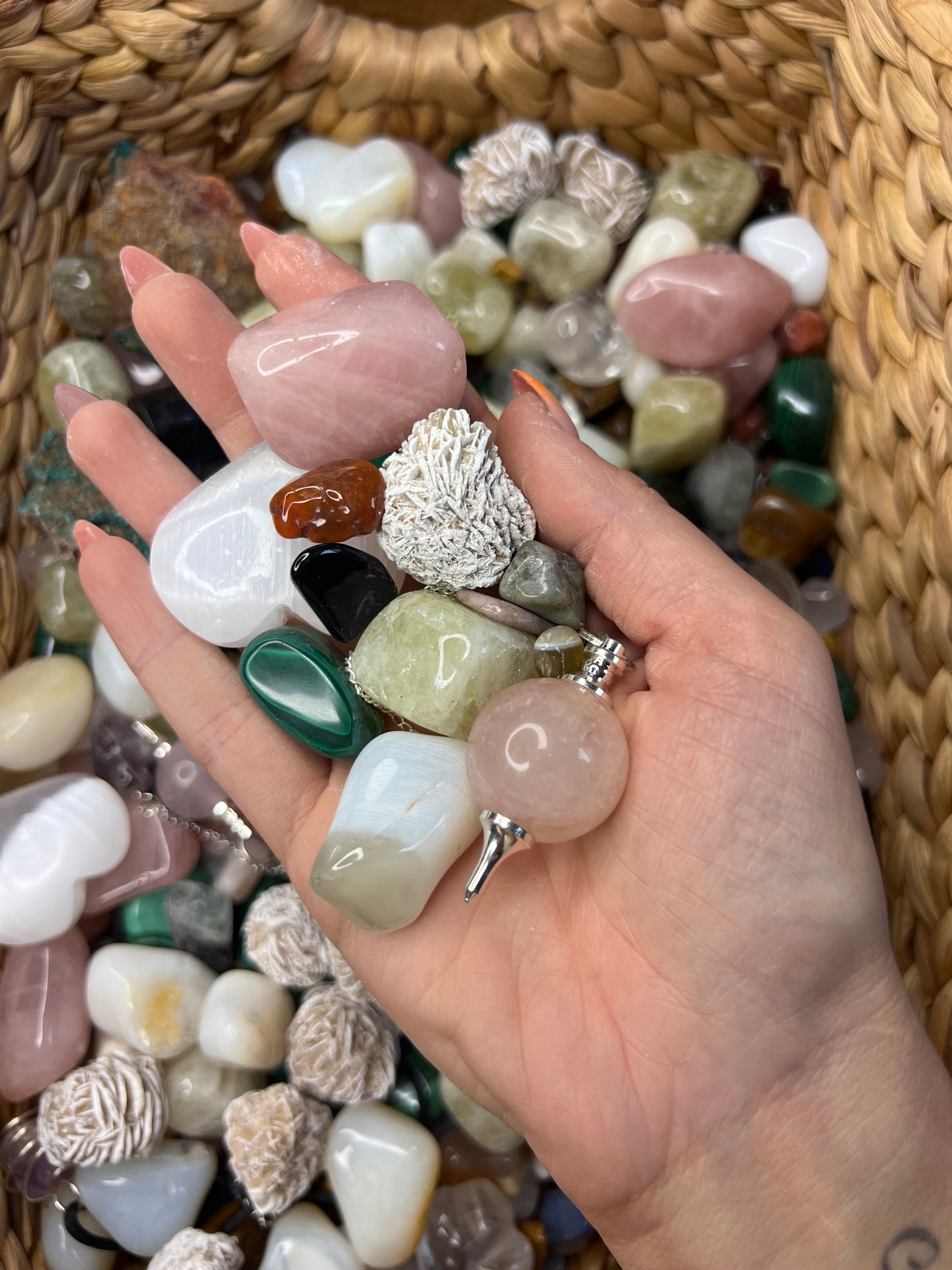 Mélange de 5 à 7 minéraux roulés, pendentifs, pendule ou Roll-on